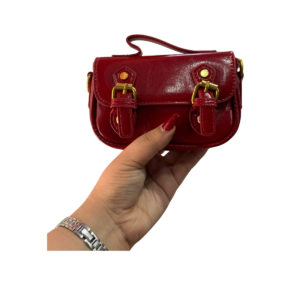 Sac élégant rouge avec boucles décoratives dorées