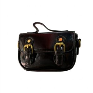 Sac élégant noir brillant avec boucles décoratives dorées